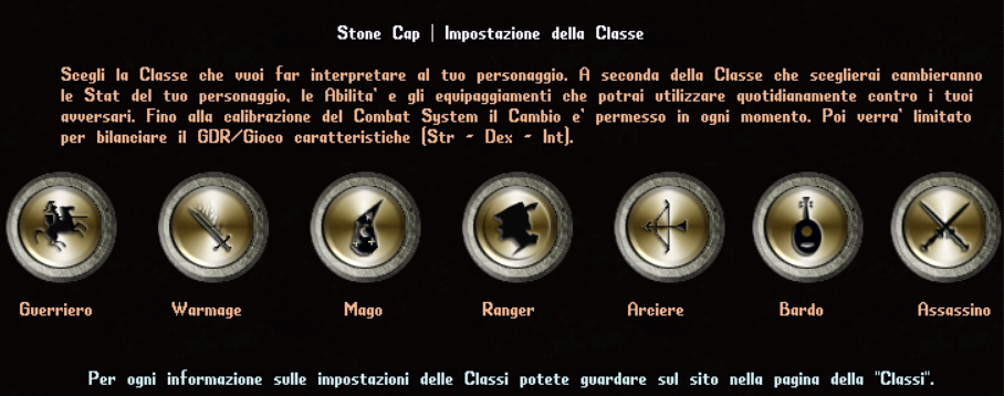 - KIT di Classe : verrà assegnato un kit di armi, armature relativo alla classe scelta e un cavallo per iniziare a muoversi.